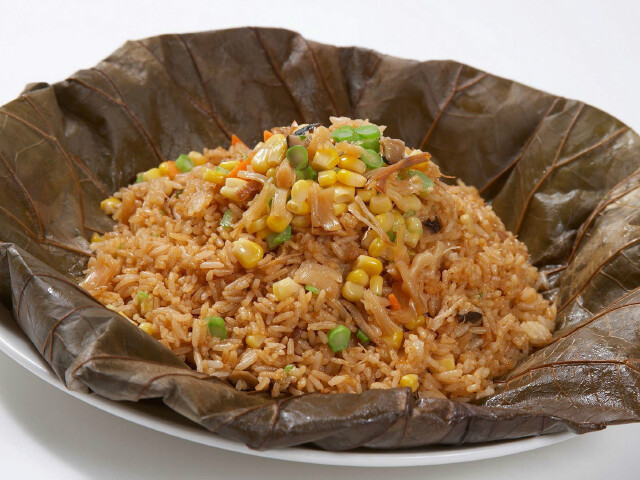 农村传统风味美食。相传已有千余年的历史。制法为:优质大米加水及生油搅拌均匀,蒸熟成饭,摊凉。 鸡蛋煎熟切片,香葱切碎,瘦猪肉、叉烧肉、虾仁、鸡肉、鸭肉、香菇切细丁,加盐混合后包入松散的饭中,再用新鲜荷叶包紧,入笼蒸熟, 即成。