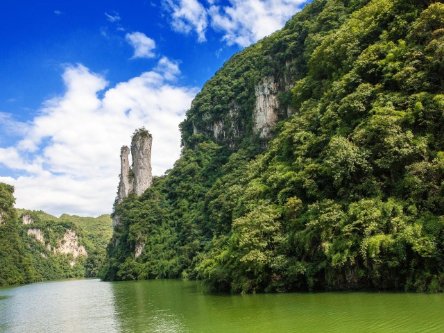 乌龙山峡谷两岸溶洞横陈,构成一个个神秘的地下迷宫,被誉为“世界溶洞博物馆”。据国际洞穴专家考证,乌龙山大峡谷是我国最大的溶洞群