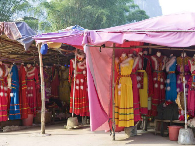 壮锦,壮族的一种瑰丽工艺品,它与湘绣、蜀锦齐名,驰名中外。历史悠久,唐宋时已有制作,明清时最繁荣,带有浓厚的地方民族风格。用途广泛,可作床毯、被面、围裙、背带、腰带、手提袋、头巾、衣边装饰等。