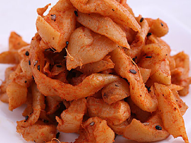 萝卜干是唐昌特色产业之一,也是当地人特别喜爱的小菜。它酿制方法独到,香脆可口,回味悠长。取料当地战旗村优质萝卜,通过精心腌制成为伴餐佐饭的佳品,是餐桌上必不可少的下饭菜之一。