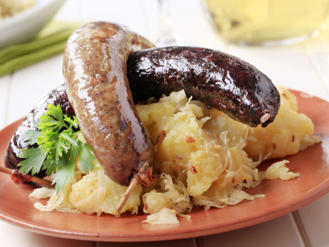 血肠是黑水地区藏民最为普遍的一种食品,凡宰杀猪后,都要加工制作血肠。把猪血、糌粑面、猪杂油用佐料拌匀后灌进猪小肠,两头用细绳拴紧,放进开水锅里煮熟后捞起,待稍冷后切成节食用,味道鲜美,是招待客人和乡邻的佳品。