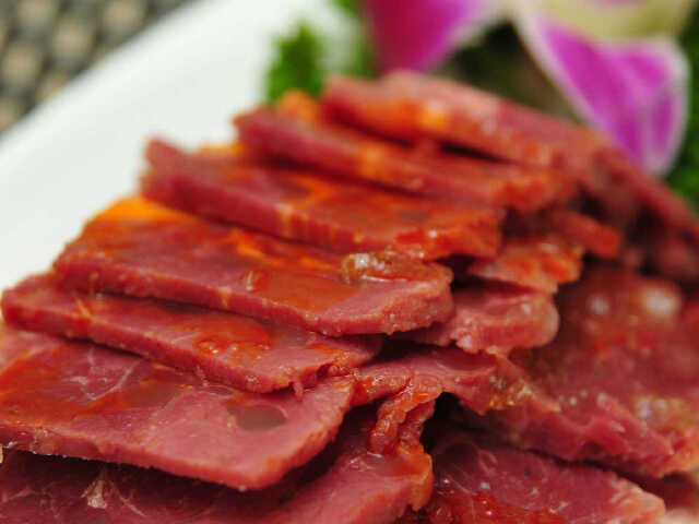 凉拌牦牛肉牦牛的肉经过盐卤,切成薄片,拌上辣椒不失为一道好的下酒菜,当然,酒要喝当地的青稞酒。