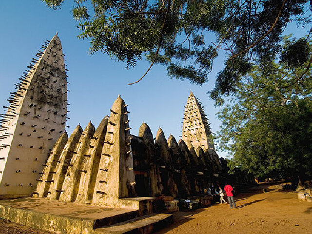 大清真寺通体黄色,墙外都有突出木头做结构材料,外墙有着一些的突出的墙垛,两座尖顶主塔和外墙密集的承力墙垛子,是这建筑的主要特色,显得与众不同。