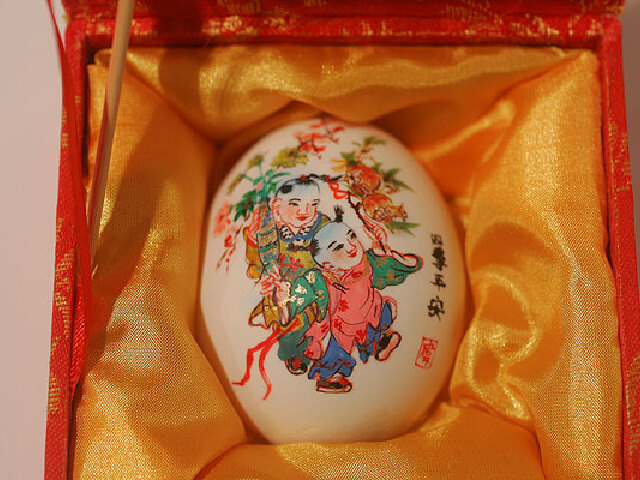 彩蛋是一种具有欣赏价值的装饰工艺美术品,青海的彩蛋多以青海湖鸟岛的"弃蛋"壳为原料,精心绘出各种工笔画或彩色图案制作而成。画面有的具有青海高原风士人情;有的具有民族物色;有的展现了牧区风貌。总之,具有浓厚的青海地方特色和民族特色。