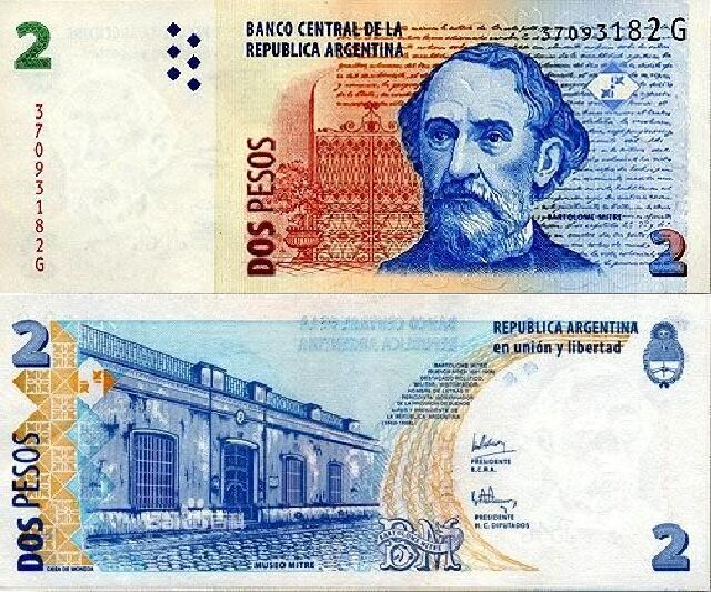 阿根廷比索是阿根廷的通用货币,币种有纸币和硬币,阿根廷比索的代码是ARS。 纸币的面值有1、2、5、10、20、50、100比索。 硬币的面值有1、5、10、25、50分,1比索。 其中币种的兑换进位为1比索=100分。