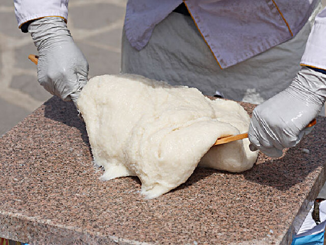 米糕在平壤是非常受欢迎的食品之一,其种类很多,十分有名的就是当地的打糕。是由蒸熟的糯米盛在木舀里,用锤在木舀里打上大约半小时,然后将搭乘块状的糯米切成片。再撒些红豆沙,喜欢吃甜食的可以在浇些蜂蜜或者白砂糖。经过捶打之后的糯米口感更好,更有嚼劲。是当地非常有特色的一种米糕。
