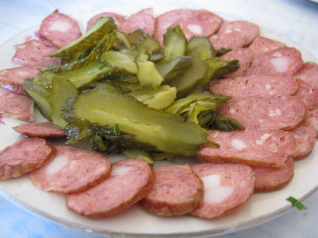 俄式酸黄瓜是当地美食中的代表,其味道十分好吃,是其他地区乃至国家的美食所不具备的,要想吃这里的美食,那这样美食则是不二之选。俄式酸黄瓜虽然是很多凉菜的配菜,但如果没有它,菜色的味道则会大打折扣。俄式酸黄瓜的味道集酸、辣、香、咸于一体,黄瓜质地脆嫩,不但清爽可口、开胃解腻,而且黄瓜中的营养能够更好地被人体消化吸收。