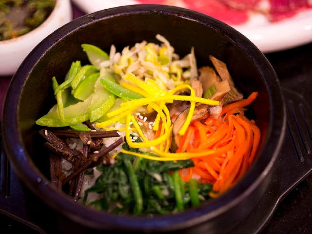 到平昌郡的话,野菜拌饭是一定要尝尝看的。野菜的种类比较多,名字基本上我们也都叫不出来,反正都是一些当地的特色蔬菜就是了。米饭是蒸熟的,蔬菜也是蒸熟后切丝的,一片片地摆起来盖在米饭上,再点缀上鸡蛋和牛肉,卖相那还是相当不错的。