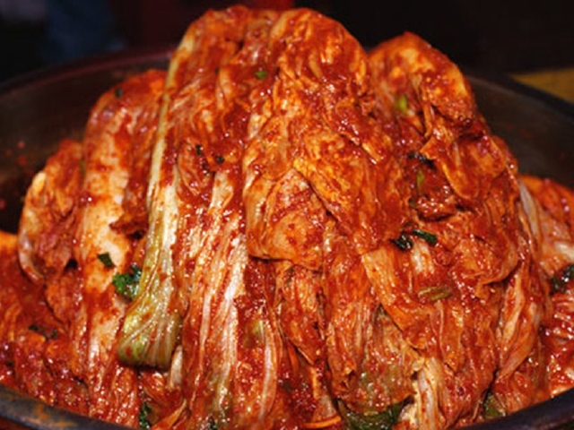 腌明太鱼肠泡菜是江原道的特色料理,在韩国餐厅里吃到的泡菜一般是以白菜为主,当然了,新闻告诉我们大部分白菜泡菜还是天朝产了运过来的。腌明太鱼肠泡菜主原料是萝卜跟明太鱼肠,酱汁也是明太鱼做的,腌制过后味道还是很特别的。