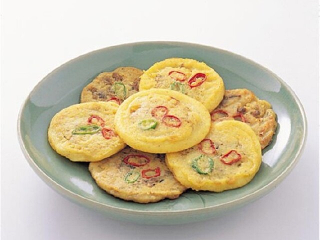 韩国安山市的绿豆饼与我国一些地方的绿豆饼有很大的不同,安山市的绿豆饼是将磨好的绿豆粉加入盐和切碎的猪肉末以及绿豆芽和蕨菜,有的还会加入切成丝的泡菜,将调配好的绿豆面团捏成一个个圆形的小薄饼,然后放在平底锅上煎,直到将绿豆饼煎成金黄色泽,就可以出锅了。这种绿豆饼不仅酥脆可口,而且还有各种材料带来的各种不同的口味,令人惊喜不断。
