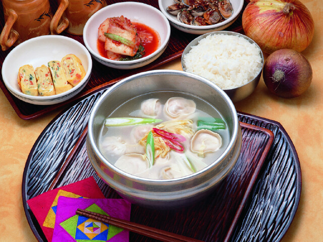 饺子汤也不时地出现在韩剧中,最常见的饺子就是猪肉和牛肉的馅儿,近来也渐渐的有了野鸡肉等其他肉类做成的饺子,饺子皮还可以用不同的蔬菜混入,这样就会有不同的颜色了,比如粉红色和黄色的。一般将饺子放入汤里煮就好了,有时也会加入年糕等。饺子汤是韩国的一大特色美食,在韩国严寒的冬季,来一碗暖暖的饺子汤,简直温暖全身,春节的时候,饺子汤也是必不可少的,和泡菜一起吃更是美味中的美味。