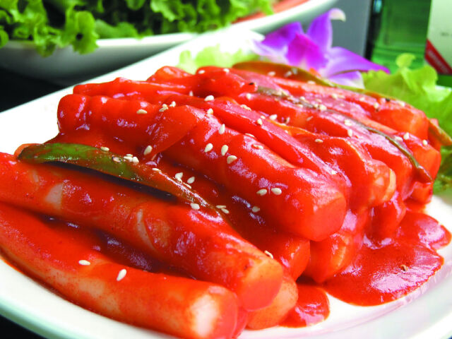 韩国除了泡菜就属炒年糕最红了,这种将糕切成糕条做成的炒年糕在大街小巷都能买到,男女老少都喜欢吃,一般都是白条的年糕,和鱼丸还有其他油炸食品一起在街边兜售,在大点的韩式料理店也都能品尝到,加入了韩式辣酱和其他特色调味料,是年糕吃起来甜甜辣辣的,在寒冷的夜晚,在街边的小摊上来一份炒年糕,和三五好友聊聊天,全身都暖暖的,还能填饱肚子,吃炒年糕时,还能让老板给你一份免费的鱼丸汤。