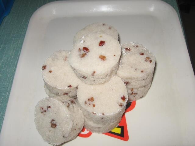 铃形松糕是一种在和面时加入玛格丽酒并发酵后,将黑芝麻、大枣以及鸡冠花叶和石耳作为配色调料放在和好的面上,一起放进蒸笼里蒸熟,最后用铁质模具弄出铃铛形状的年糕。这种年糕经常回出现在节庆或者祭祀活动上,有的家庭还将它作为招待亲友的点心或者赠送给亲朋好友。在当地的食品店,均可右手,价格在十几元人民币。