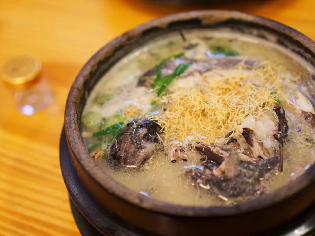 参鸡汤是韩国人夏天用来补养的绝佳美食,选用营养最为丰富的五到七月大的雏鸡为主料,切掉头和脚,清理内脏。将洗净的糯米泡在水里一两个小时,然后会同洗净的红枣和去皮的大蒜以及洗净的人参放进鸡肚里,再用针线缝上,放进生姜一起煮上四十分钟左右。鸡煮好后,盛在碗里再加入盐、胡椒粉,一道香气四溢的美食就完成了。