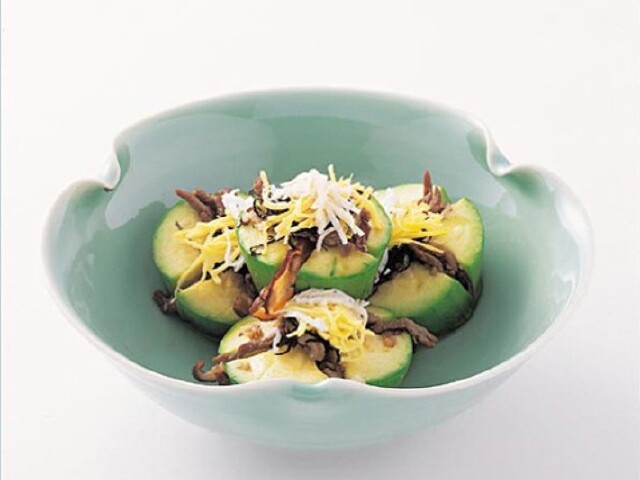 南瓜膳选用优质细而嫩的南瓜,分半用刀划出条纹,然后放进盐水中浸泡十来分钟。将经过切成丝并炒熟的牛肉和香菇放到浸泡过的南瓜缝隙中,然后再放进平底锅里加入盐、酱油、白糖以及肉汤一起煮,煮上二十分钟左右就可以出锅,再加上切成丝的鸡蛋,一道美味的南瓜膳就做好了,吃的时候可以搭配芥末或者醋来增加口味。