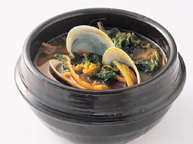 芥菜大酱汤是一道营养丰富的风味美食,芥菜那丰富的蛋白质含量以及维生素,使得芥菜在中医上被认为是具有助消化功效的蔬菜。其做法是将大酱或者是辣酱倒进淘米水中做成汤,然后把煮好的蛤蜊肉放进汤中,并加入洗净的芥菜,一锅煮。熬上一会儿之后,加入蒜泥和葱花,煮上一会儿就可以出锅了。鲜美的芥菜和肥嫩的蛤蜊,伴着浓郁的酱料味,使得这道菜令人食欲大增。
