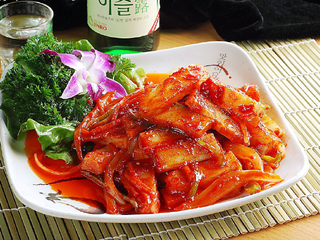 韩国炒年糕,是韩国代表性的街头美食。将条状的年糕和鱼丸一起在锅中翻炒,再加上特制的辣椒酱,软糯、鲜香、爽辣,一定会让您爱不释手。在韩国的涟川郡,炒年糕是一种老少都喜欢的食品,也是逢年过节,亲友聚会上一道必不可少的一道菜。