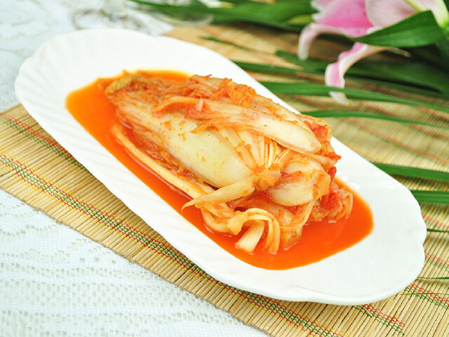 韩国泡菜是一种主要以蔬菜为制作的材料,然后用各种水果、海鲜及肉料为配料进行调配和腌制的发酵食品。泡菜是韩国美食的一大特色,也闻名全球。有些国家也用泡菜作为主菜的辅助食物,来增加食物的美味。韩国泡菜五味俱全,易消化,爽胃口,既能补充营养,又能预防动脉硬化,降低胆固醇,消除多种疾病。由于韩国所处地理位置冬季寒冷、漫长,不长果蔬,所以韩国人用盐来腌制蔬菜以备过冬。