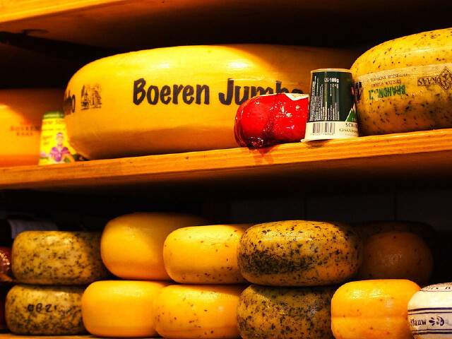 荷兰奶酪最具代表性、最有名的就是如同车轮般大小的黄波奶酪(Gouda),外表像个黄色的大车轮,表面覆有一层标明口味的薄蜡,乳味比较浓重也受欢迎。红波奶酪(EAM)是世界上唯一保持完美球形的奶酪。黄波奶酪与红波奶酪均属原味奶酪,其营养丰富,味道浓郁。