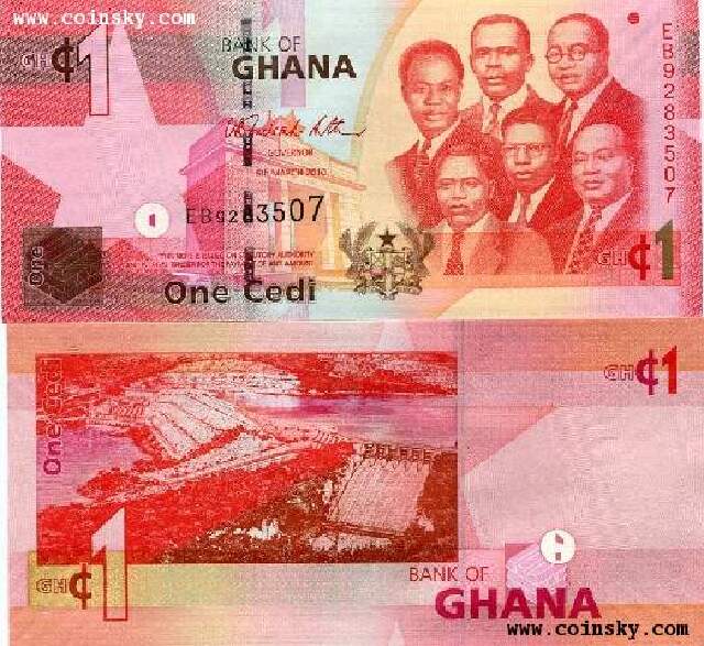 目前流通的新塞地面额为1、5、10、20、50塞地。硬币币值有: 1/2、1、2.5、5、10、20、25、50比塞瓦。1GHC=100 pesewas(比塞瓦)。1new cedi(C)=100 pesewas。