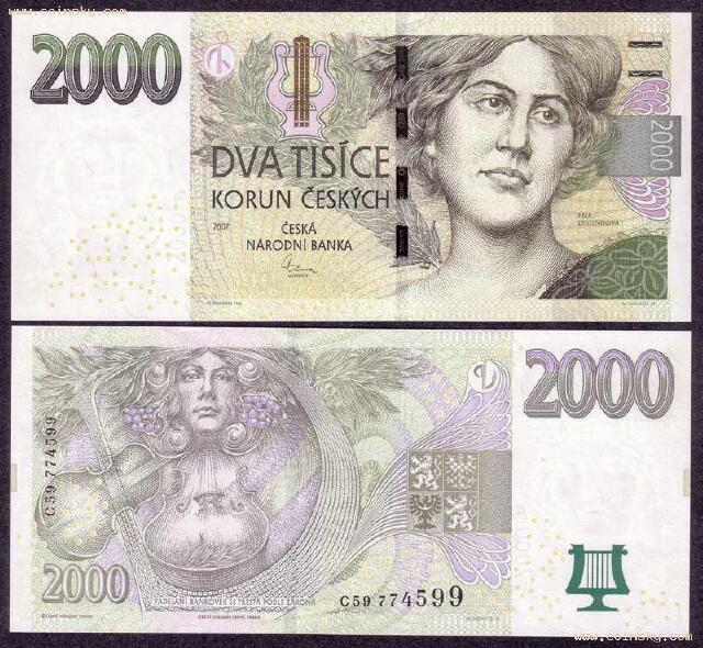 捷克克朗(单位:克朗、赫勒 货币符号:CZK/Kč、h)