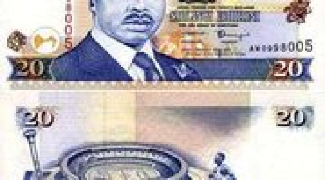 肯尼亚的货币较稳定,市面流通纸币有50, 100, 200, 500, 1000先令等五种面值,流通硬币一般有0.5, 1, 5, 10, 20先令等5种面值,40先令面值硬币刚通行不久,很少有流通。货币进制是1先令=100分。肯镑为记帐单位,1肯镑=20肯先令。