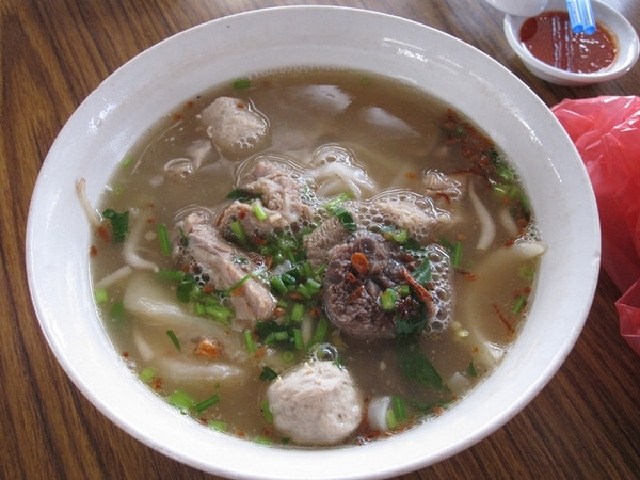 粿条汤,在新山也是一道名吃,小摊贩上的尤其美味,虽然有时卫生状况堪忧。 食材:粿条,新鲜猪肉,猪肉丸,生菜,虾,猪骨汤底,牛肉,牛肉丸,牛杂,鱼丸,紫菜等。 口感风味:酸辣可口,粿条劲道