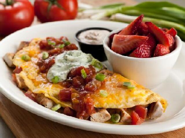 Omelet,美国群众普遍的一种早餐饮食。 跟中国的蛋饼有点类似,把面粉与鸡蛋调和在一起煎制而成,里面卷上洋葱、西红柿、青椒、火腿、蘑菇、奶酪等,吃的时候再沾点酱,如沙拉酱、番茄酱。 口感风味:满口蛋香,粘软可口