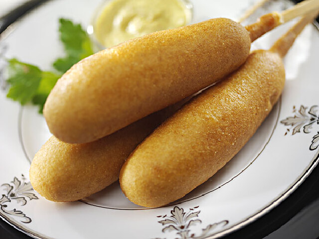 玉米糊裹着热狗,兹兹啦啦油炸一番,穿在木棍上,香喷喷的味儿一定是要馋死人的。