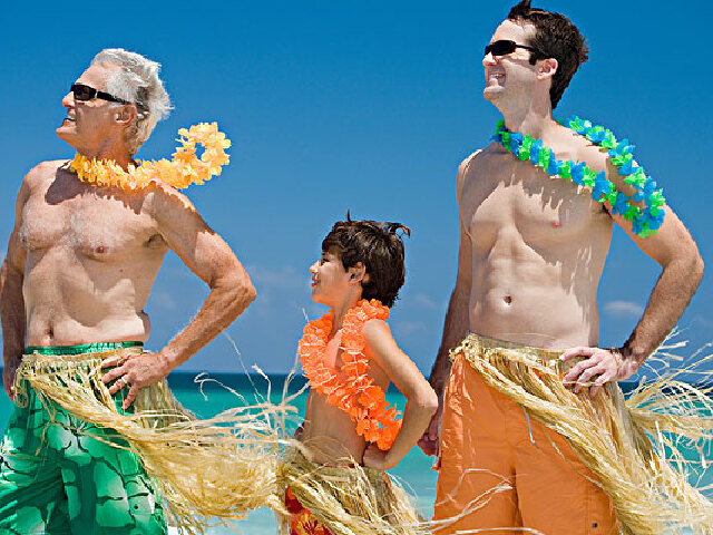 阿洛哈衬衫和姆姆裙是夏威夷的传统服装,也许这种印着彩色图案的衬衫一点都不正式,但是在热情似火的夏威夷海滩上,这种衣着跟大海和艳阳相映成趣,浓浓的海洋风。