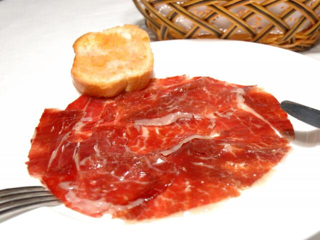 西班牙的伊利比火腿是世界上最顶级的火腿,它简单的制作方法却形成了世界上最美味而且其他的地方却无法仿制的火腿。伊利比火腿的制作时间十分的漫长一般要2-3年的时间,在这漫长的时间中伊利比火腿经过海盐的腌制和自然的风干,白色的脂肪和红色的精肉变得深红发亮,吃起来的味道略微有点咸,又轻又软,有着强烈而精致的味道,和令人愉快的、与众不同的香。