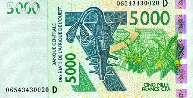 非洲金融共同体法郎,是西非经货联盟的统一货币,全称为非洲金融共同体法郎,简称为西非法郎(FCFA)。纸币面值有:500、1000、2000、5000、10000法郎,一共5种面值。硬币面值有50、100、200、500法郎,一共4种面值。