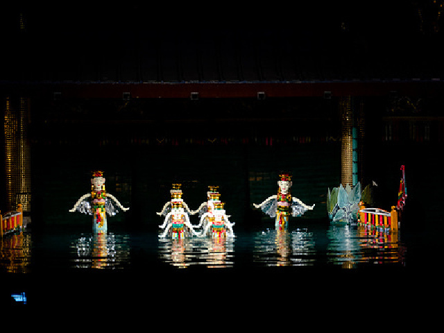 水上木偶戏发源于北越,是越南国宝级剧种,也是越南最具特色的传统民间舞台戏,世界上独一无二的木偶戏。河内最为著名的剧院组织了一个剧团常驻胡志明市,为游客进行水上木偶剧表演,每晚表演三场。开场前10分钟左右开始检票进入。它稀奇的地方,就在于木偶戏于水池面上演出;表演者必须长时间浸泡于水中,利用其强劲的臂力及纯熟的控绳技巧,让玩偶生灵活现的演出各项传说故事,左右伴奏现场唱念做打,其动静合宜的神态令人拍案叫绝。