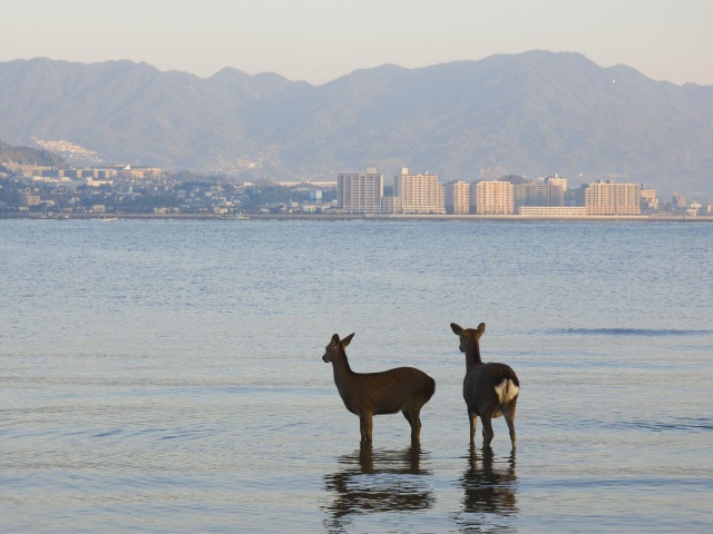 宫岛,又称为严岛,与宫城县的松岛、京都府的天桥立并列为“日本三景”。它以严岛神社及其满潮时立于大海中的朱红色鸟居最为著名。在宫岛上最具特色的就是鹿在岛上自由出没,野生鹿在街道上与游人伴行,十分有当地特色。