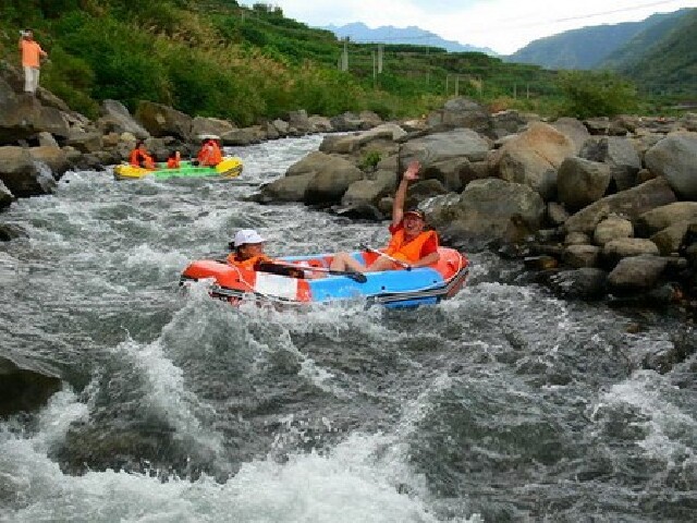 九龙溪弯弯曲曲全长近4公里,形成了九曲十八湾,驾皮筏漂流,即可观两岸青山人家,奇峰云雾,低头能赏深浅水色,侧耳又听流水声,伸手能融清流,浅水滩下河打水仗、静潭上互拨水嬉耍,在漂流中使你置身于人间仙境的天然画中,回到快乐无忧的童年。