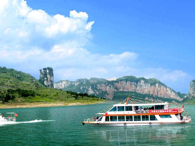 乌江在重庆酉阳流域形成了两百多里的天然山水景观画廊。夹石峡、黎芝峡等五个峡长达八十九公里,峡谷的自然风光自成一体,有着“乌江百里画廊”的美誉。百里画廊两岸的景色非常优美,两岸绿树成荫,天地一线,波涛汹涌。这五个峡谷既和谐统一,又各有各的特色。乌江百里画廊是市级的风景名胜,乘坐乌江的画舫就可以来浏览这里美丽的风景了。