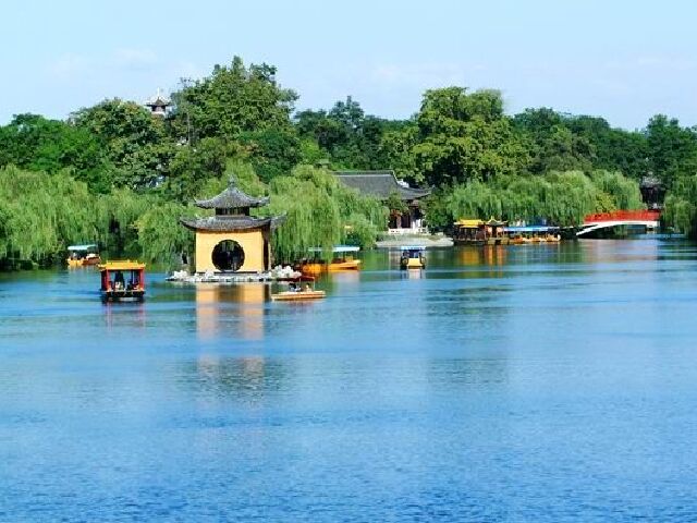 江苏的美景之一,青山绿水,四周被河水包围,山因为水的环抱而显得倍加生机勃勃,小金山是扬州廋西湖二十四景之一,为瘦西湖中一小岛,原名长春岭,建于清代中叶,当时扬州豪绅为了打通瘦西湖至大明寺的水上通道,在瘦西湖之西北开挖了莲花埂新河,挖河的土堆成了一座小山,这就是今天的小金山。