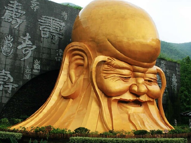 溧阳的春天素来茶香鱼肥,春色遍野,不只是茶叶好,溧阳的风景也是一绝。在溧阳南山竹海,有一位南山寿翁,号称是“中国寿星”。这位南山寿翁是南山长寿文化区的一个标志性建筑,人们能够看到的是一尊高约十三米的纯铜头部雕像。由于是建在山顶,因此人们就形象的将整座山当作这位寿翁的身体了,这也难怪他被称为中国寿星。在雕像的后方有一面上面刻着六十八种风格的“寿”字的石墙,而据景区工作人员介绍,整个南山共有一百种不同字体的“寿”字,出去石墙上面的六十八个,另外有三十一种寿字,可以在山上的岩石上找到。