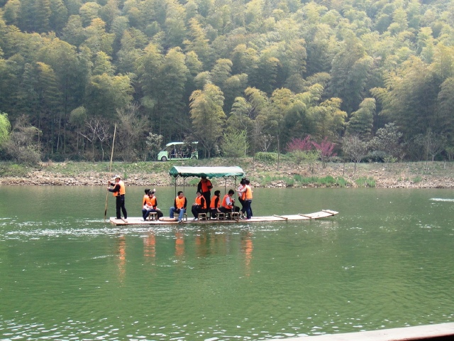 在南山竹海景区,一排排竹筏飘荡在翠绿清新的静湖湖面上。坐上竹筏,轻轻摇着着浆,竹筏缓缓拨开水面,碧波荡漾,慢慢向四周散开来。泛舟湖上一面呼吸着湖面上竹筏的清香,一面感受这带有水的湿润的清新空气,湖岸是一望无际的竹海,清风佛面,那散发着清凉静雅的气息扑面而来,正所谓“舟行碧波上,人在画中游”,此景如画,竹海水韵令人沉醉其中。翠绿的竹海,秀美的湖水,这等恍若仙境般的美景,怎能容许错过。