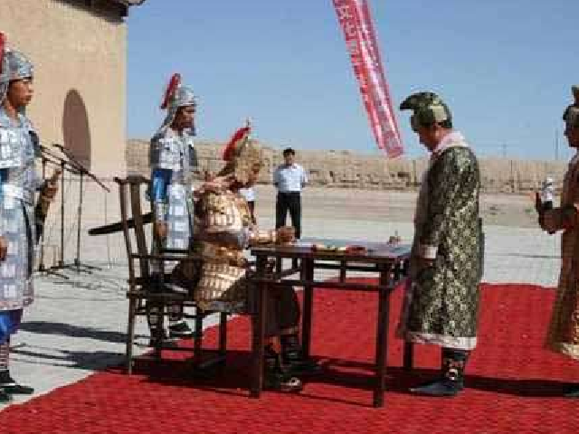 仪式的内容主要是由游客穿着古代武官和士兵服装,在嘉峪关关城仿照古代将士出关时的情形,整个演出活动场面宏大,气氛热烈,形式独特,极具观赏性,深受广大游客的喜爱和赞誉。仿古出关仪式后,还表演了仿古士兵演练、武术杂技表演等观赏性节目。