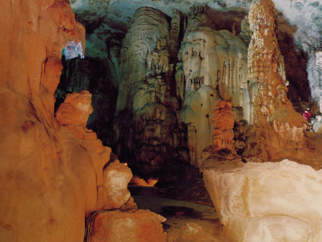 仙人桥架在相邻的两座山峰之间,曾经有六块条石悬架其上,现在条石无存,仙人桥下就是万丈深渊,云雾缭绕, “何仙姑回娘家——云里来雾里去”说得就是此处的仙人桥。传说此桥非凡夫俗子所能过,只有何仙姑乘架山岚,独来独往。仙人桥对面山脊的东侧,有一药王殿,旁边是用山石堆砌得十分齐整的墙壁,其上有一平地,名为茅庵,是道家修炼时散步放风的场所.