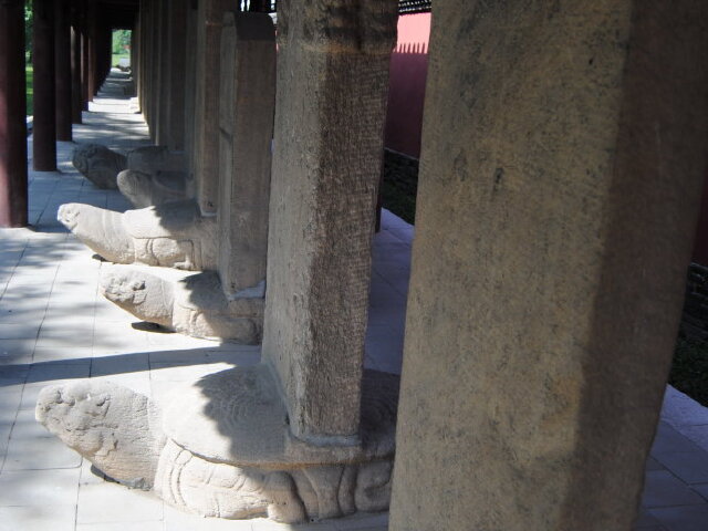 北岳庙中碑碣林立,目前存有自北魏直起到民国的历代经幢137通,是河北现存较大的碑群之一。北岳庙碑碣是研究历史的资料宝库,碑碣字迹真、草、隶、篆、行各体皆有,向后人反映了不同时期的书法艺术,这些碑碣都具有非常高的艺术价值和历史意义,是我国书法艺术中不可多得的宝藏。