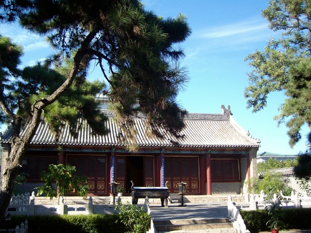 沿香路而上,过西面的朝仙门,就能见到一座高大的砖雕牌楼。整个牌楼风格古朴,是典型的明代建筑。门额上刻有“南天门”,表示游客已来到了神仙府第。由牌楼进入,就能看到碧霞元君大殿,这座景忠山的主体建筑,雕梁画栋。大殿正位,供奉的就是道教神仙碧霞元君,左右两侧是其化身眼光娘娘和送子娘娘。