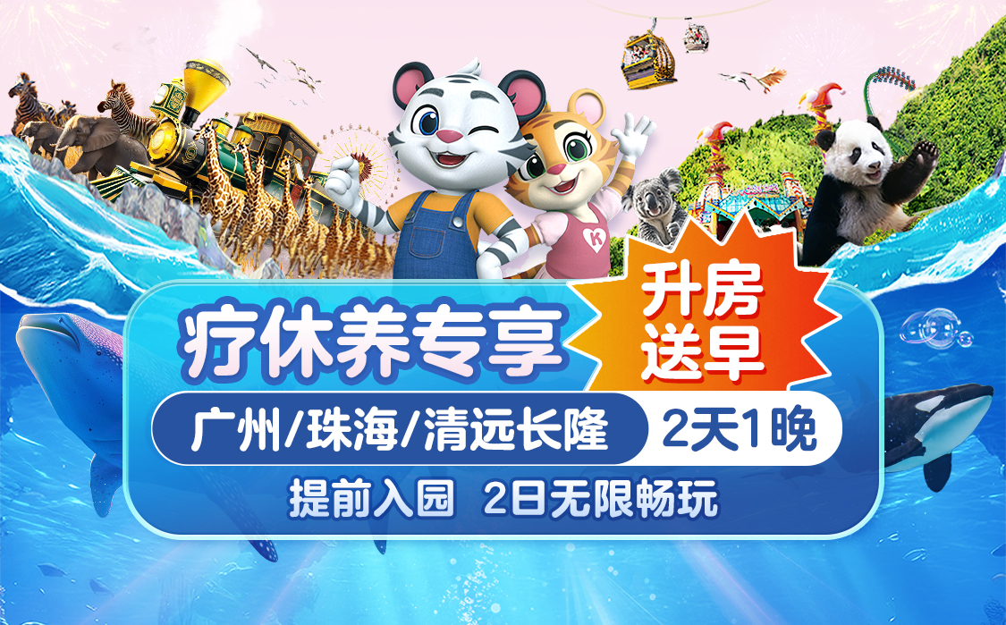 <疗休养专享广州or珠海or清远长隆酒店>2天1晚酒店自选,免费升房+送早,打卡热门景点广州长隆野生动物世界、珠海长隆海洋王国or飞船乐园