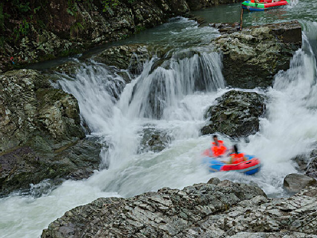 粤东龙鲸河漂流,位于梅州市丰顺县西北部,采用无动力充气艇顺流而下,自大龙华镇起漂,漂程9.8公里,落差40米,漂时3—4小时,途中急滩与缓潭相间,惊险刺激,有世界规模较大、数量较多、保存完好的冰臼群,是三百万年前冰川遗迹,令人叹为观止。 龙鲸河水清见底,两岸峡谷风光旖旎,让你回归自然,在漂流旅程中忘情于大自然美妙的风景画卷。