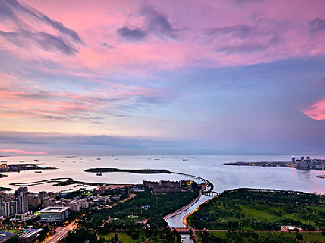 汕头市海滨路“海滨长廊”位于汕头市中心区内海湾北侧,是一座宽17米,长2000米的带状公园。园内廊、亭连贯而长,似一长龙,气势磅礴。沿廊树绿扶疏、郁郁葱葱,与廊上金黄色琉璃瓦互相映辉于蔚蓝色的海天之间,构成蔚然大观的景象,为汕头市游览地之一。曾被列为鮀岛新八景之一,称“长廊观海”。