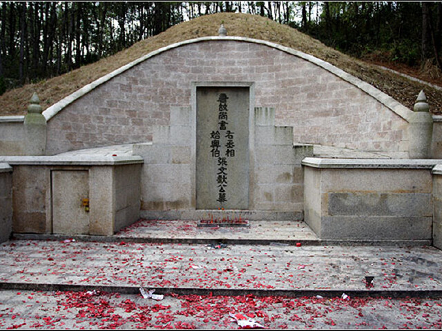 墓建在半山腰,正面为广阔的稻田和村落。右方有两重群山拱立映照。墓的左面乃是一条高低直伏的青翠岗峦,其迤逦延伸着,直至几户人家零星点缀于其中。唐开元尚书丞相张九龄乃是有胆识、有远见的著名政治家、文学家。他作为丞相秉公守则,直言敢谏,”先天下之忧而忧,后天下之乐而乐”,为开元盛世的出现做出了极大的贡献,为后人所敬仰。张九龄墓几句唐朝氏族特色,为家庭式墓群,他的墓旁有其妻卢氏、弟张九皋、张九章等人的墓,形成家族群体的墓群特征。张九龄墓不远处便是祠堂,其中亦有不少张氏家族的历史遗物。