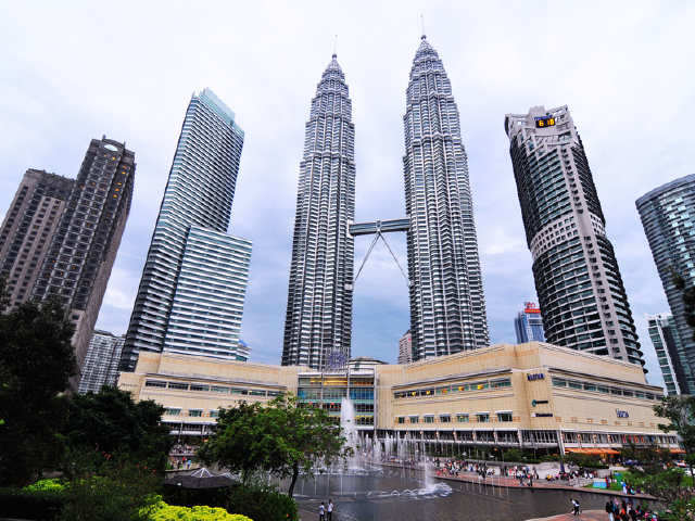 马来西亚首都吉隆坡的双峰塔是吉隆坡的标志性城市景象,是目前国际上很高的双子楼和第五高的修建物,也是马来西亚经济蓬勃的标志,也是游客从云端俯瞰吉隆坡的绝佳地方。这座设计独特的银色尖塔式建筑体现了吉隆坡这座城市年轻、中庸、现代化的城市特性,以其独特的高大与典型,使吉隆坡城市拥有了新的“高度”。