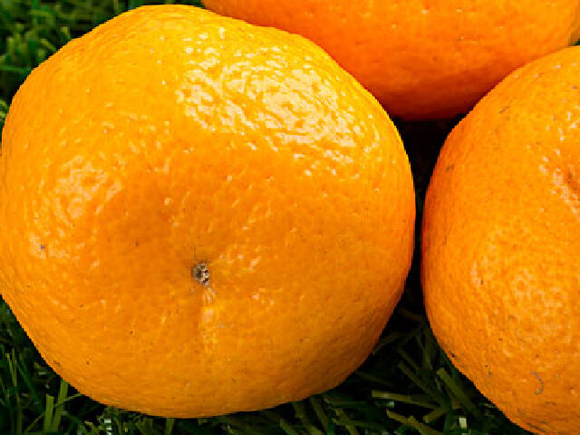 钟山沙糖桔,又名:十月桔,是广西贺州的主要特产之一,因其味甜如沙糖故名.沙糖桔果实扁圆形,顶部有瘤状突起,蒂脐端凹陷,色泽橙黄,裹壁薄,易剥离.沙糖桔尤以四会黄田镇出产的为其鲜美而极甜,无渣,口感细腻,实为佳品.其含有丰富的维生素C、钙、纤维质、少量蛋白质、脂肪以及丰富的葡萄糖、果糖、蔗糖、苹果酸,枸椽酸、柠檬酸以及胡萝卜素、硫胺素,核黄素、尼克酸、抗坏血酸,以及钙、磷、镁、钠等人体必需的元素,沙糖橘味甘酸、性寒,具有理气化痰、润肺清肠、补血健脾等功效