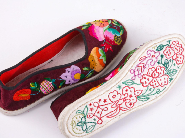 回头绣花鞋,是贺州的一道特产,也是一道手工艺品.回头绣花鞋为妇女常穿用.鞋头有钩,象龙船.分有后跟和无后跟两种,鞋底较厚,多用砂纸作成